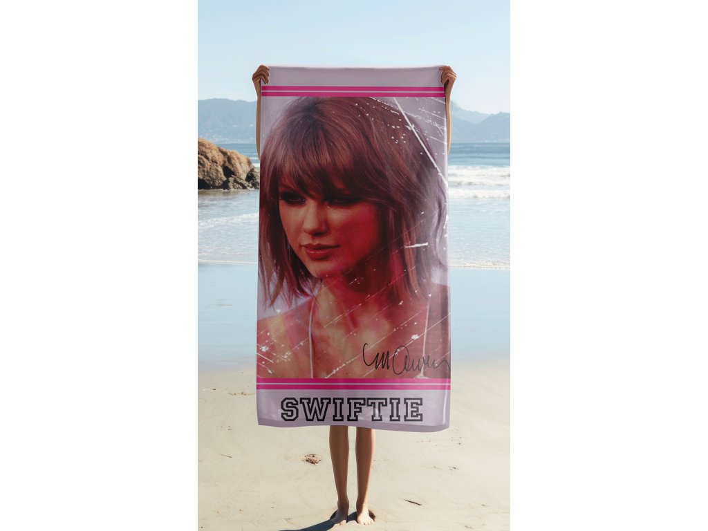 Mäkučkou froté osuškou s motívom obľúbené Taylor Swift - Swiftie. Osuška je krásne mäkká, nadýchaná a dobre saje vodu - je ideálna pre použitie po kúpeli aj na letné šantenie pri vode. Na farebnej osuške je tvář Taylor Swift.