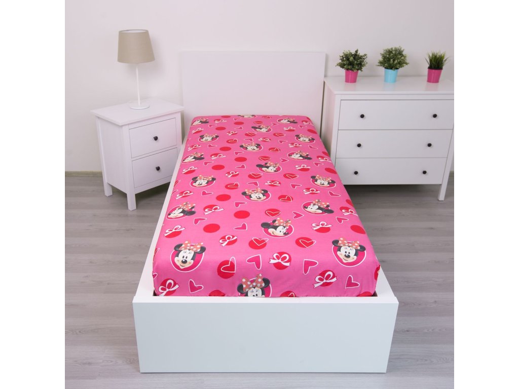 Licenčná napínacia prestieradlo 90x200 cm s motívmi obľúbenej Minnie vás zaujme hladkým omakom bavlneného plátna a pestrými farbami. V rohoch prestieradla z bavlny je natiahnutá guma v tunelíku, vďaka ktorej prestieradlo priľne k matracu bez zbytočných záhybov. Prestieradlo vytvára ideálnu klímu pre pokojný a zdravý spánok.