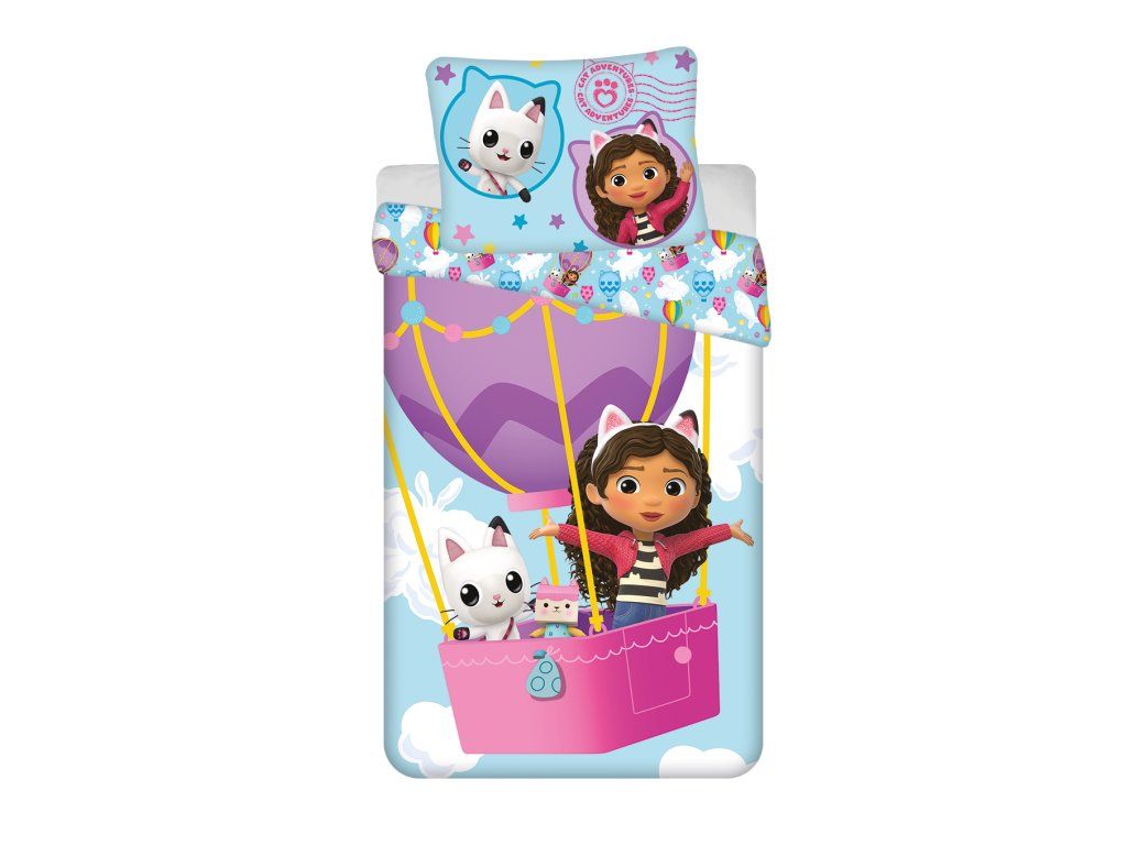 Kúpte svojmu dieťaťu, detské obliečky s motívom bábiky Gabby a jej mačacích priateľov, ktorí sa vydávajú za dobrodružstvom v jej domčeku pre bábiky. Obliečky zo 100% bavlny zaručia skvelú priedušnosť, jemnosť a dlhú životnosť. Licenčné obliečky sú opatrené zapínaním na zips, ktoré ušetria prácu hlavne mamičkám. Potlač obliečok je z každej strany odlišná, nehrozí teda, že by sa obliečky akokoľvek omrzeli.