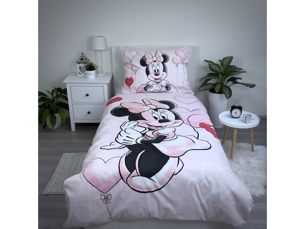 Detské obliečky s obľúbenou postavičkou Minnie v rozmere 140x200 a 70x90 cm sa stanú krásnym doplnkom detskej izby. Obliečky zo 100% bavlny zaručia skvelú priedušnosť, jemnosť a dlhú životnosť. Licenčné obliečky sú opatrené zapínaním na zips, ktoré ušetria prácu hlavne mamičkám. Potlač obliečok je z každej strany odlišná, nehrozí teda, že by sa obliečky akokoľvek omrzeli.