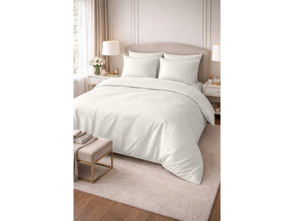 Luxusné damaškové obliečky Geometria s moderným geometrickým žakardovým vzorom. Kombinuje nadčasový design, vysokú kvalitu spracovania a výnimočný komfort pri každodennom používaní.