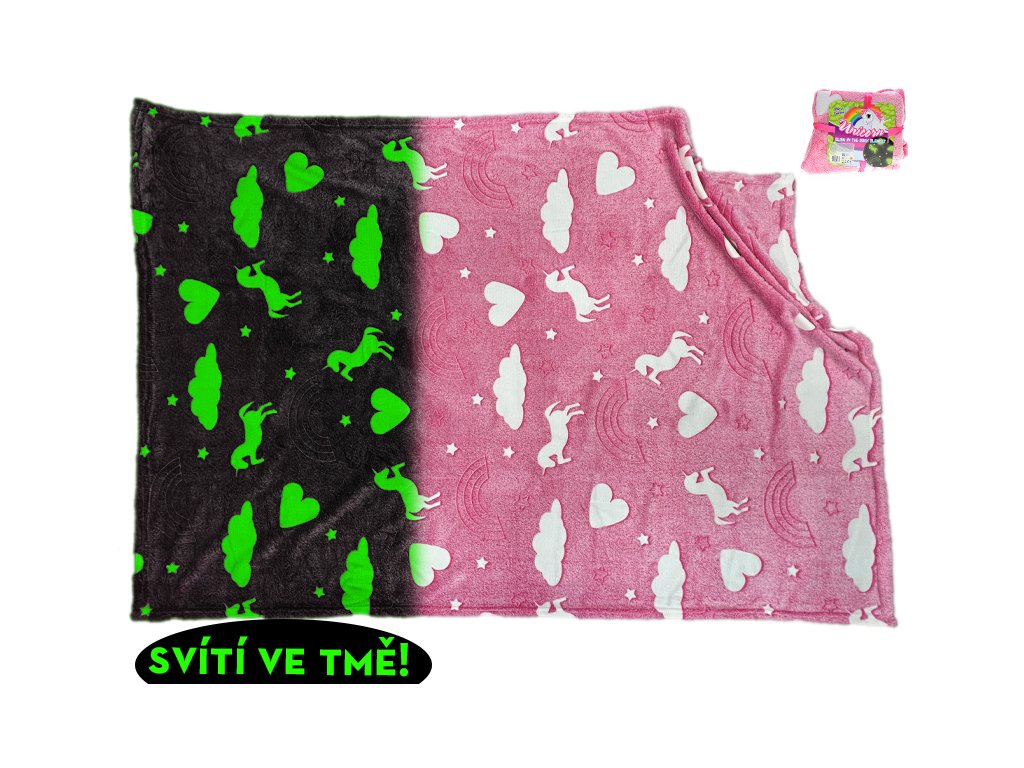 Deka mikroflanel 100x150 s jednorožcami v tme svietiaca 0m+ ružová