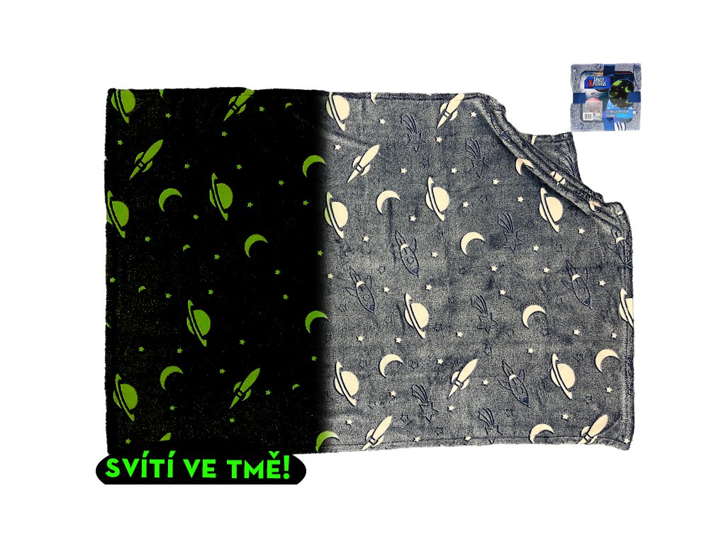 Deka mikroflanel 100x150 vesmír v tme svietiaca 0m+ modrá