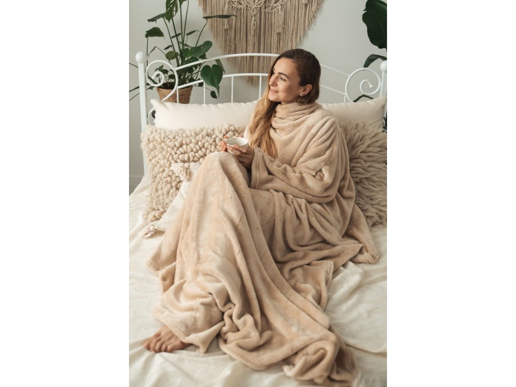 Deka mikroplyšová s rukávmi 150x210 cm - béžová