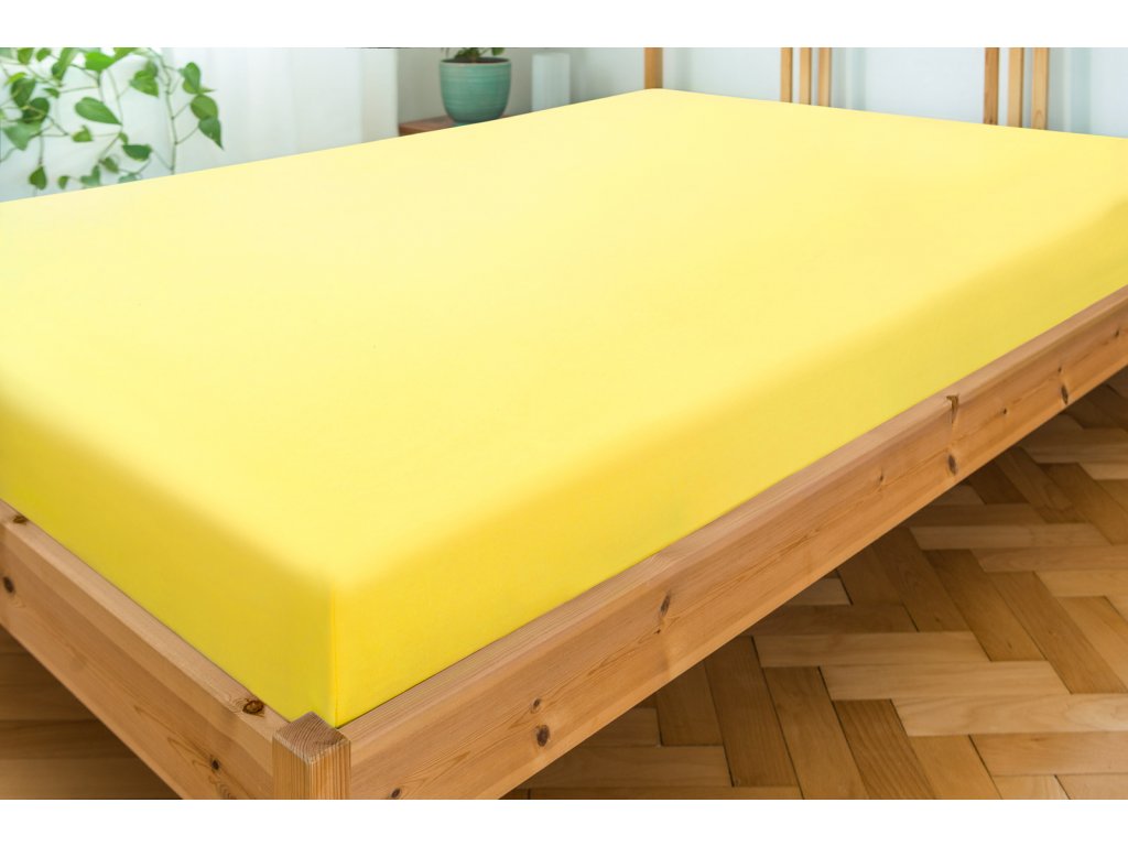 Luxusné bavlnené JERSEY prestieradlo s lycrou 160x200 cm - žltá