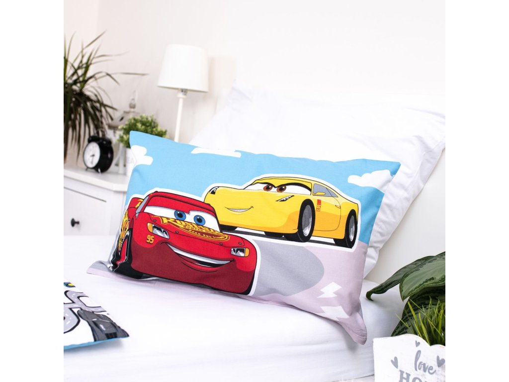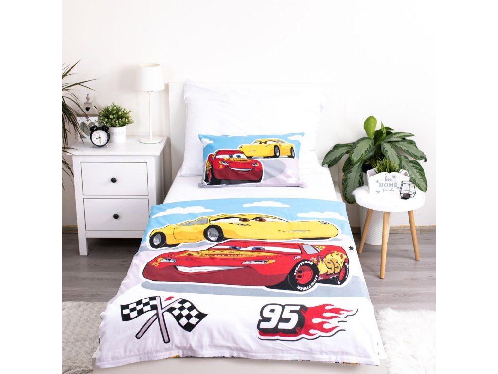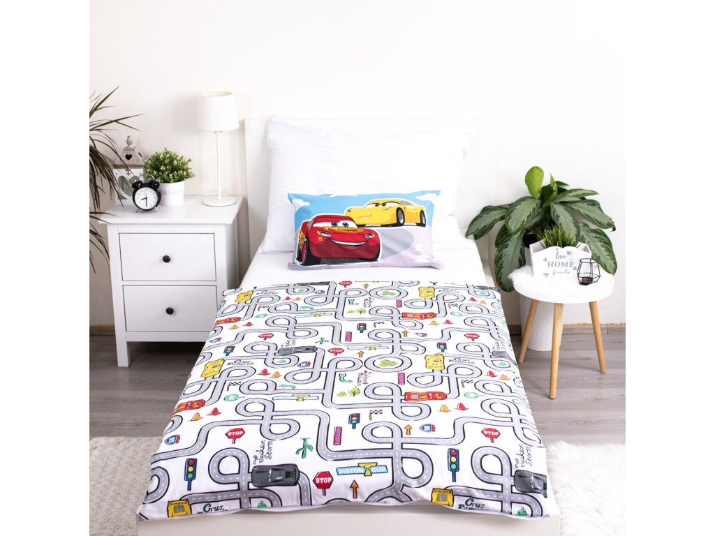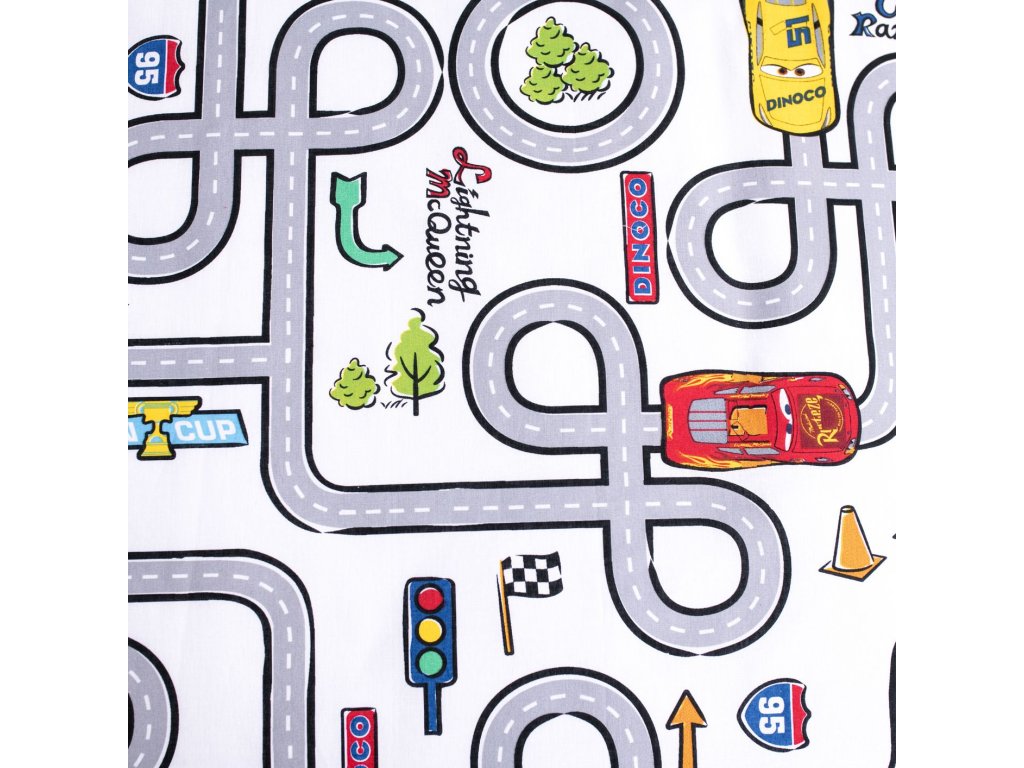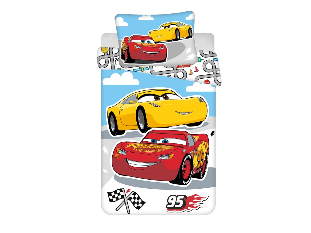Obliečky do postieľky pre najmenších s potlačou pretekárov z filmu Cars. Na jednej strane je závodná dráha po ktorej sa rútia závodné autá, spodnú stranu zdobí množstvo drobných motívov týkajúcich sa áut. Obliečky s rozmerom 100 x 135 a 40 x 60 cm sú vyrobené zo 100% bavlny, ktorá je to najlepšie, čo môžete svojmu dieťaťu dopriať. Bavlnené obliečky skvele sajú pot a zároveň sú veľmi priedušné a jemné.