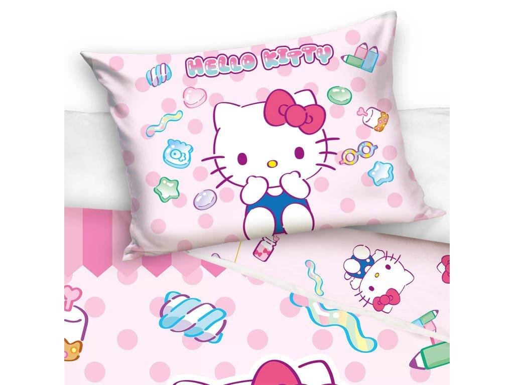 Objavte kompletnú kolekciu s motívom obľúbené Hello Kitty. V našej ponuke nájdete široký sortiment vankúšikov, obliečok, prestieradiel a osušiek s veselými motívmi zo sveta Hello Kitty.