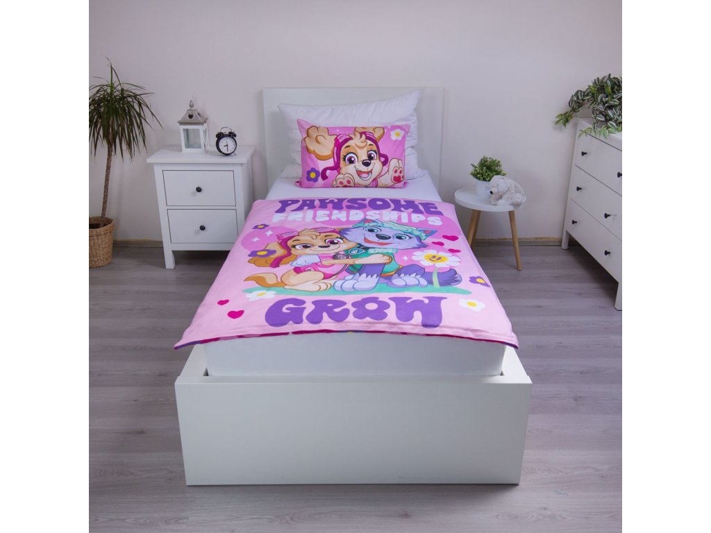 Obliečky majú obojstrannú potlač – každá strana má iný motív, takže môžete ľahko zmeniť vzhľad svojej postele podľa svojej nálady. Na prednej strane obliečok sú šteniatka Chase, Marshall a Rubble. Zadná strana je modrá s motívmi hviezd, odtlačkov labiek a náradia.