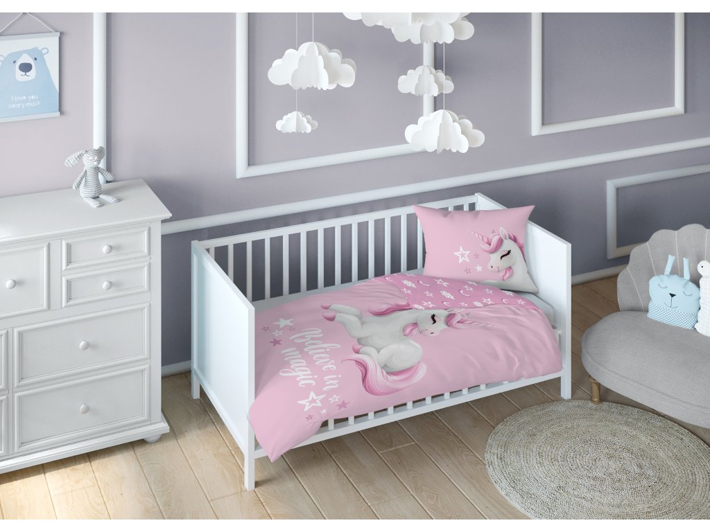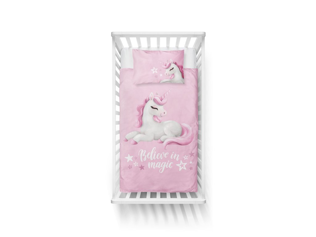 Obliečky do postieľky 100x135 + 40x60 cm - Ružový jednorožec