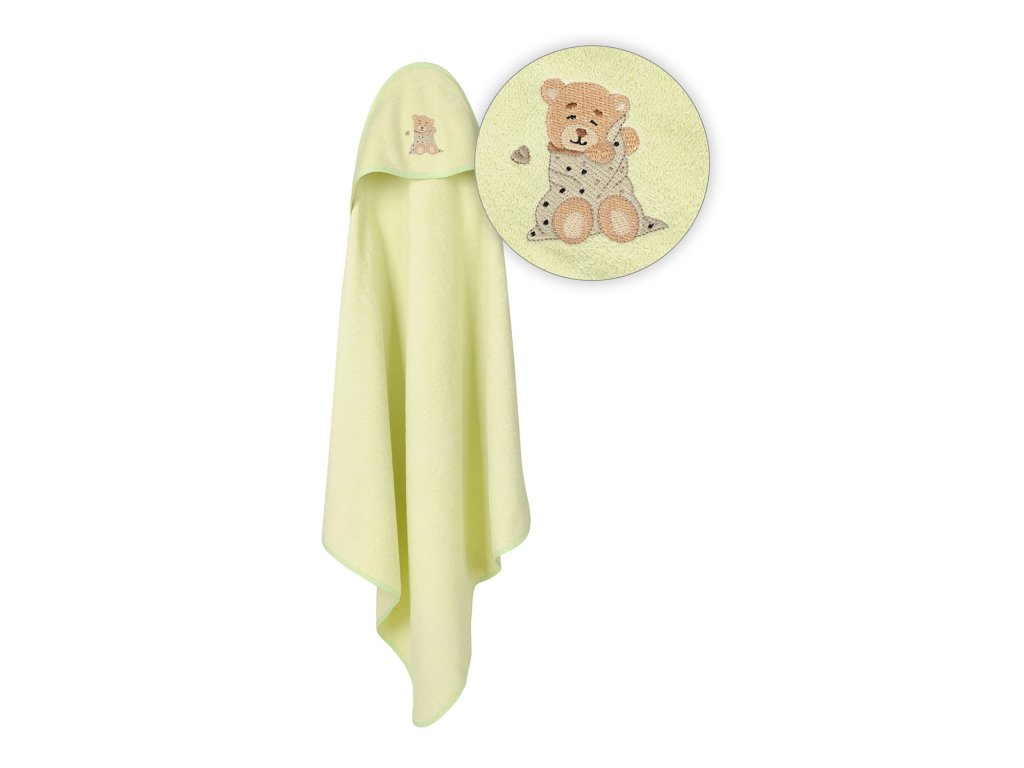 Táto osuška je vyrobená z mäkkého froté, z veľmi príjemného materiálu na dotyk. Osuška je vhodná pre jemnú pokožku dieťaťa, veľmi dobre saje, dôkladne osuší vaše dieťa a kapucňa ochráni mokrú hlavičku dieťaťa pred nachladnutím. Ozdobená krásnou výšivkou malého medvedíka.
