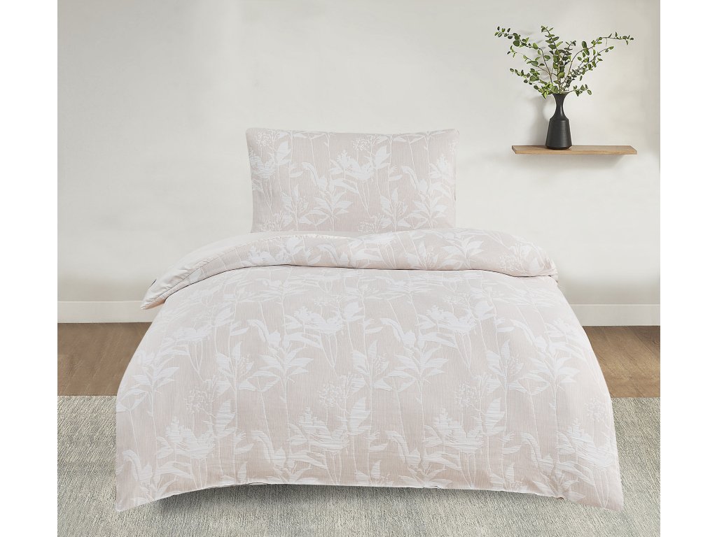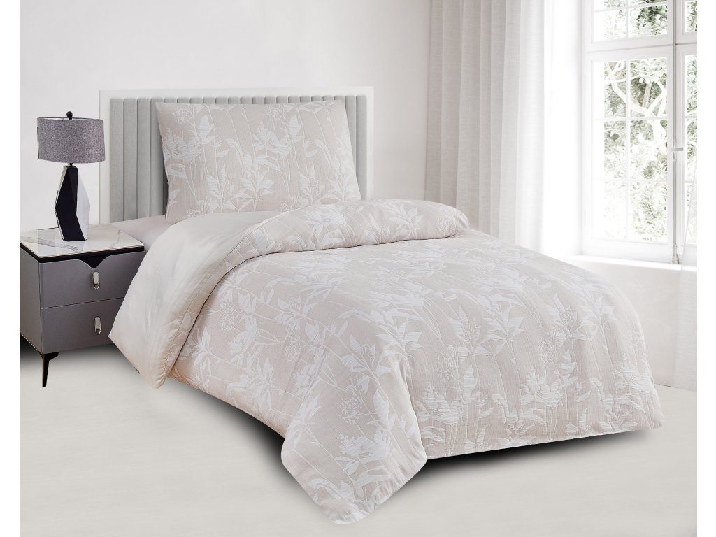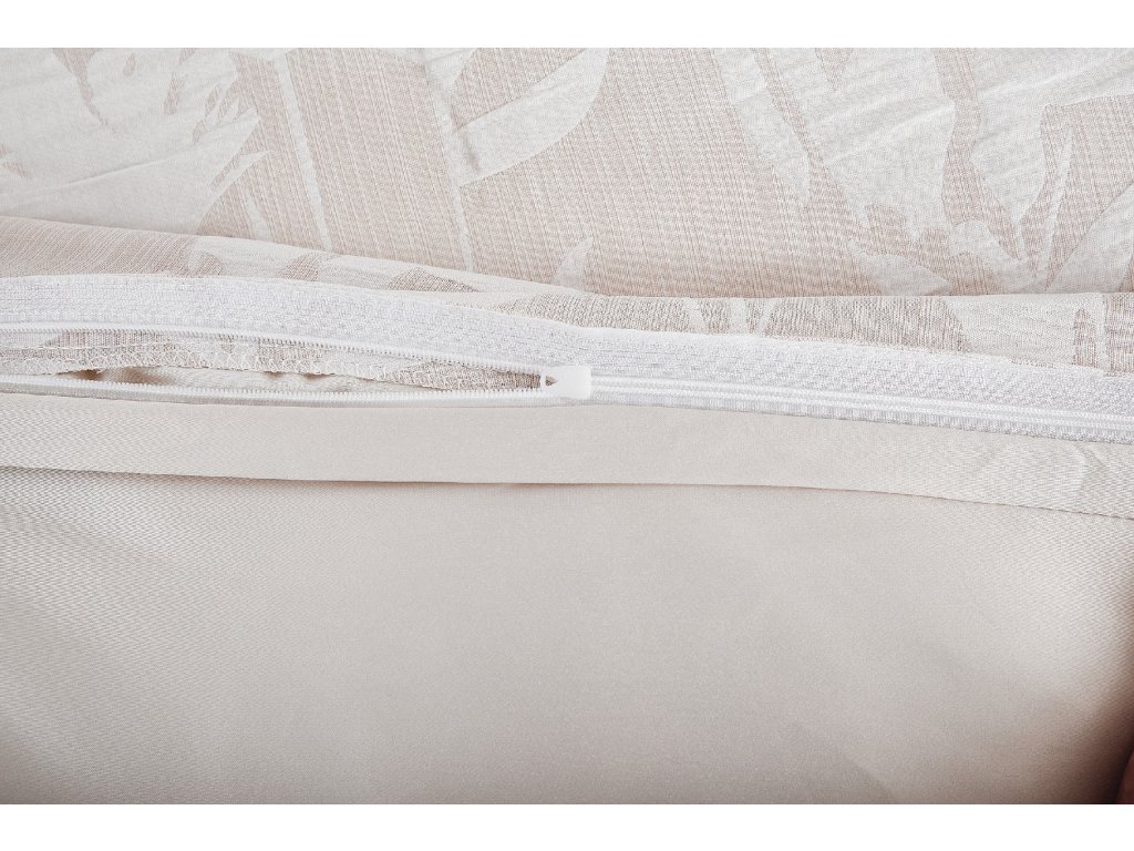 Z druhej strany odolný žakár s tkaným rastlinným vzorom - pevný, elegantný. Vďaka tomu, že vzor nie je potlačený, ale je vpletený priamo do látky špeciálnou technikou, je obliečka odolnejšia voči opotrebovaniu a zachová si svoj vzhľad aj po mnohých praniach.